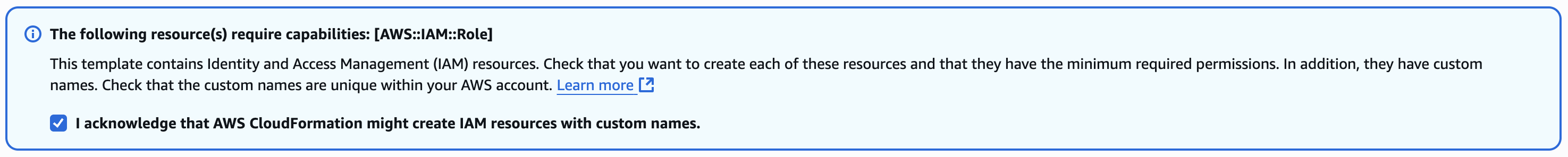 - Check the box "I acknowledge that AWS CloudFormation might create IAM resources with custom names".