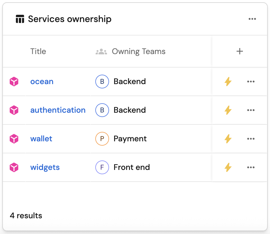 - View which services are owned by which team/s.
