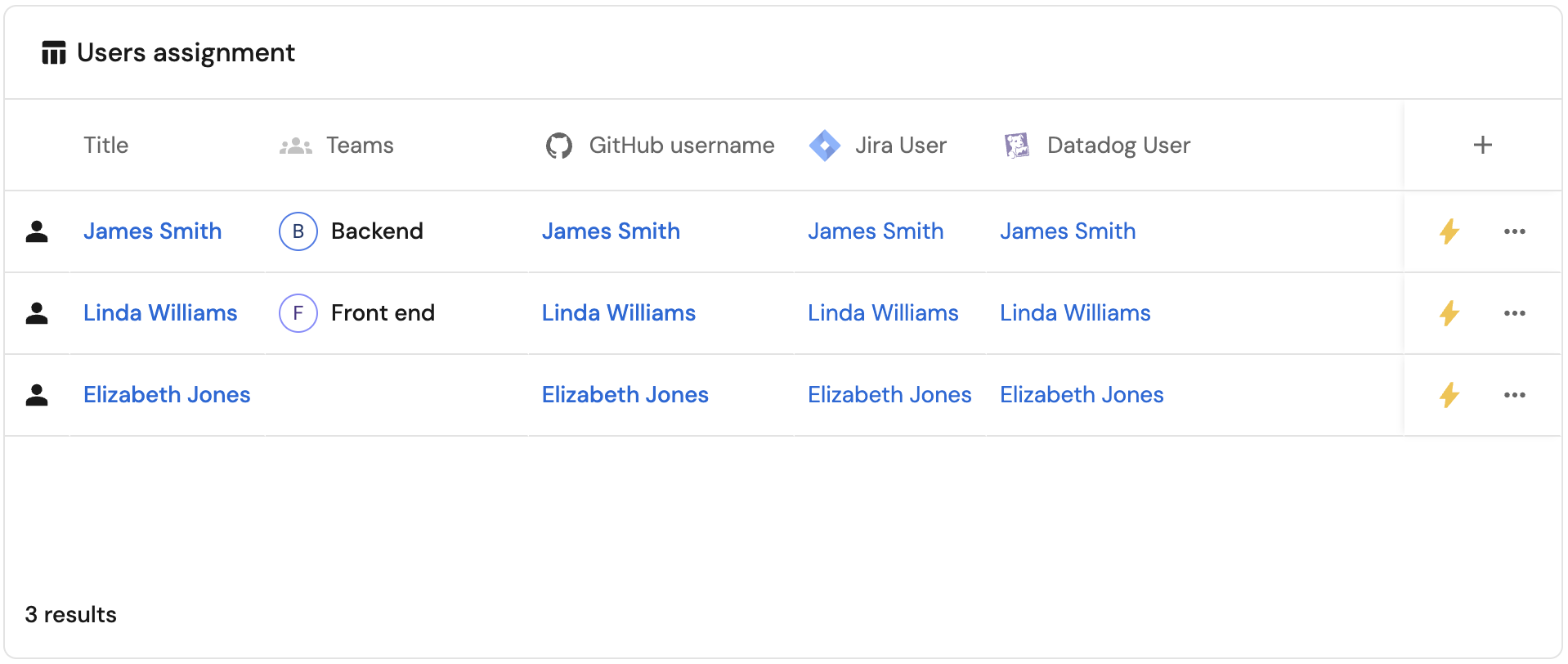 In some cases, ownership needs to be assigned to a specific user and not a team. For example, a PagerDuty incident may be owned by the current on-call user, or a GitHub Pull Request may be owned by the creator.